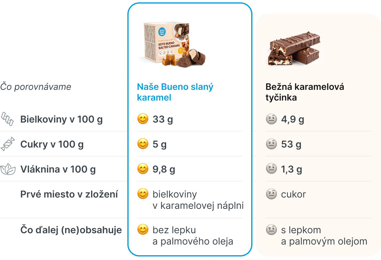 Odporúčaná denná dávka počas diéty: Ak si v priebehu diétneho plánu doprajete 1 ks keto Bueno Salted Caramel oblátky, poslúži vám ako 1 denná porcia.